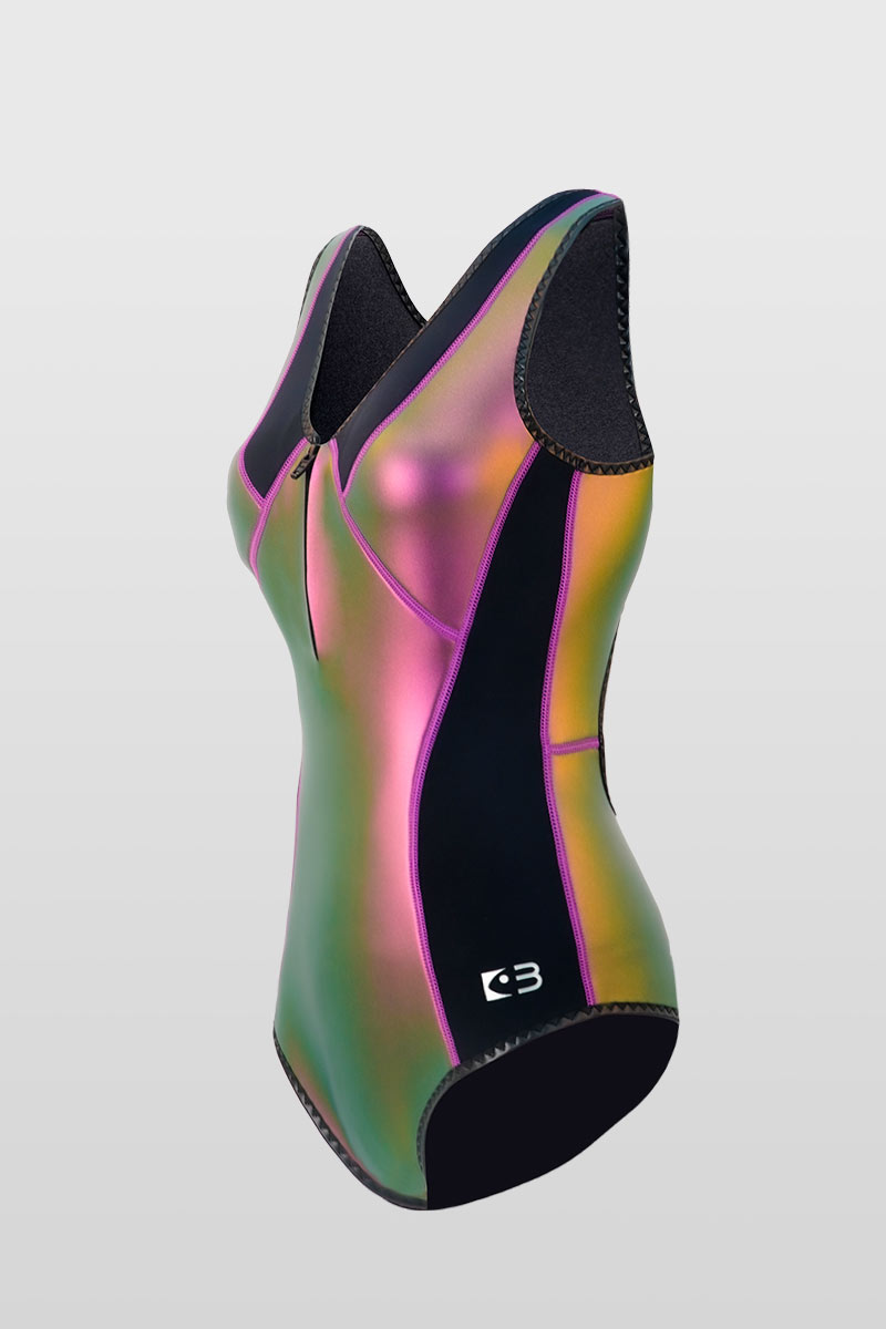 BESTDIVE极焰系列,采用大面积极彩面料配以色彩丰富的高弹面料或炫彩面料加以点缀,让整体色彩呈现更具层次感与多样化,在水下能绽放独特视觉魅力,为潜水装备注入鲜活的色彩灵魂,满足潜水者对个性与美感的追求。